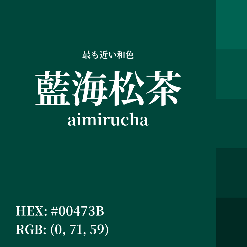 #00473B : 最も近い和色「藍海松茶 (aimirucha)」