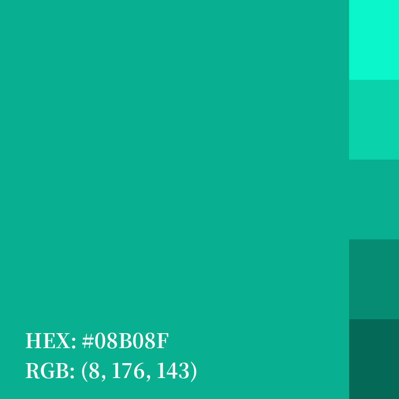 | HEX | #08B08F |