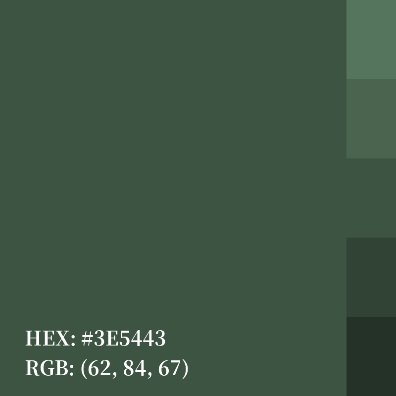 | HEX | #3E5443 |