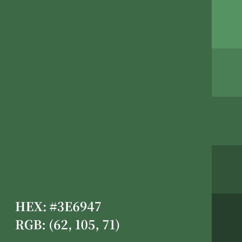 | HEX | #3E6947 |