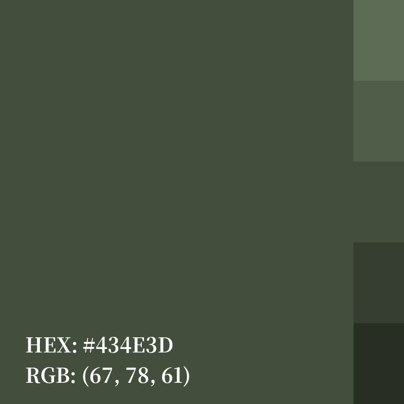 | HEX | #434E3D |