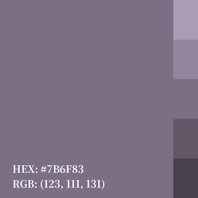 | HEX | #7B6F83 |