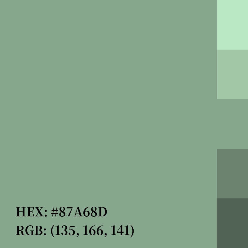 | RGB | (135, 166, 141) |