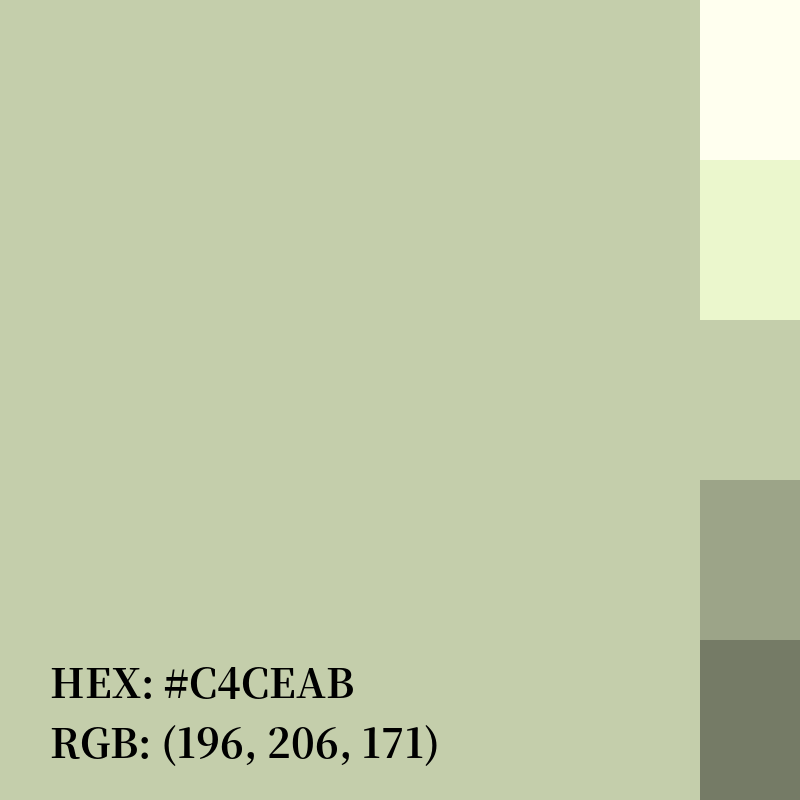 | RGB | (196, 206, 171) |
