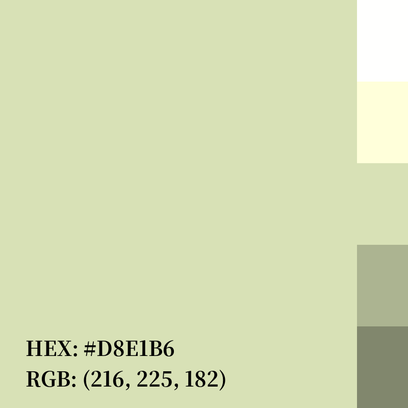 | RGB | (216, 225, 182) |