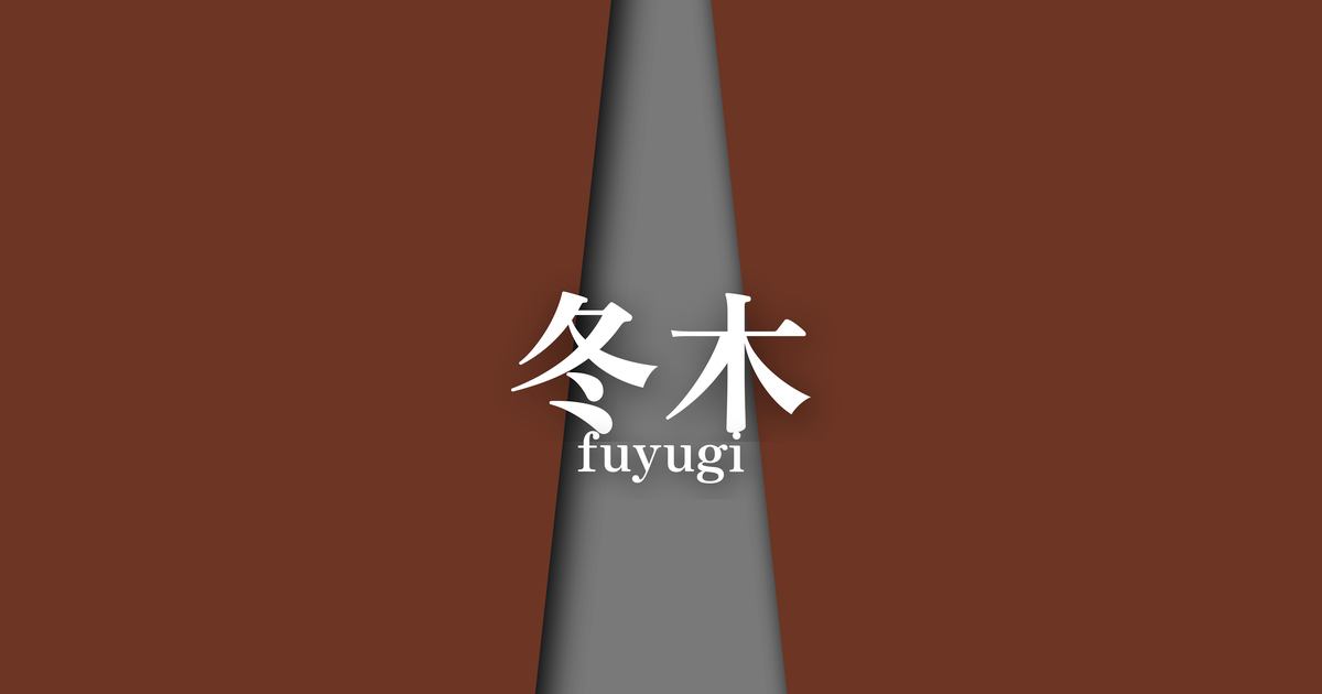 冬木(ふゆぎ)は、日本の伝統的な襲(かさね)の色目の一つで、冬の季節を象徴しています。この配色は、表地に「濃茶(こいちゃ)」、裏地に「灰(はい)」を使用しており、冬の厳しさと静けさを表現しています。