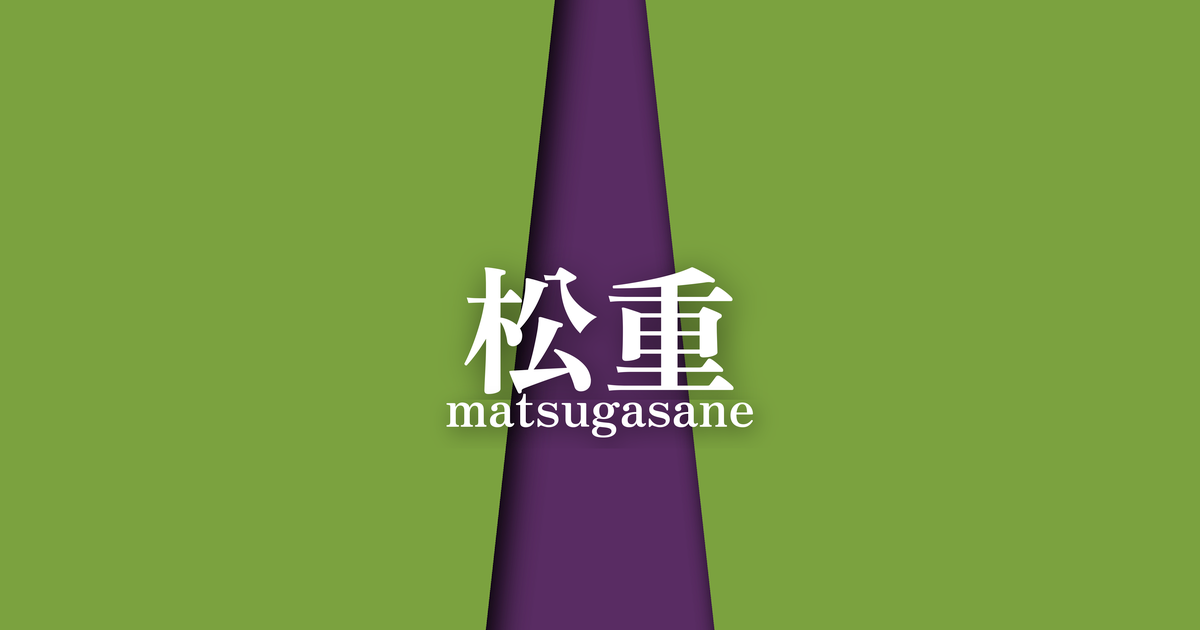 松重(まつがさね)は、冬の季節に用いられる襲(かさね)の色目の一つです。この配色は、表に「萌黄(もえぎ)」、裏に「紫(むらさき)」を合わせています。