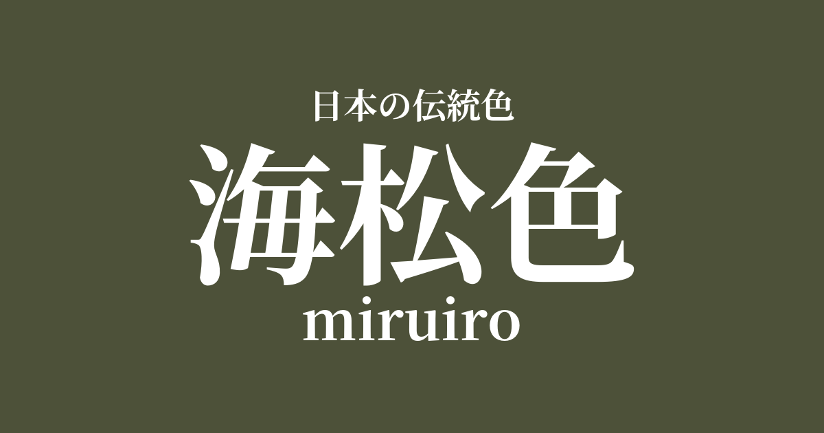 海松色(みるいろ)は、日本の伝統色の一つで、深い緑色を表す。名称は、海藻の一種である「海松」に由来し、海の色合いを反映している。