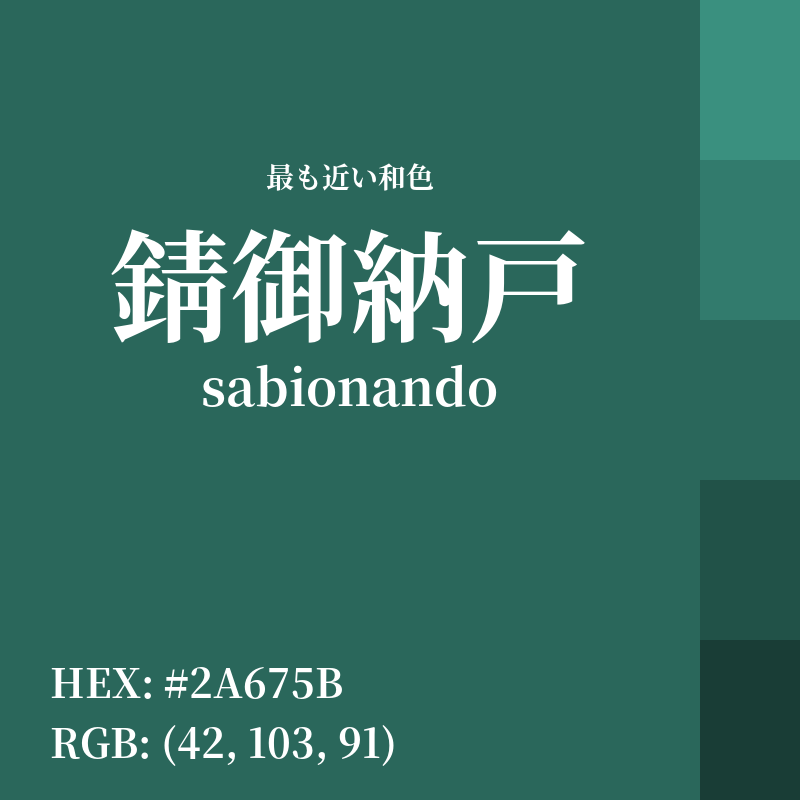 | 類似和色 | 錆御納戸 (sabionando) – 類似率 93% |