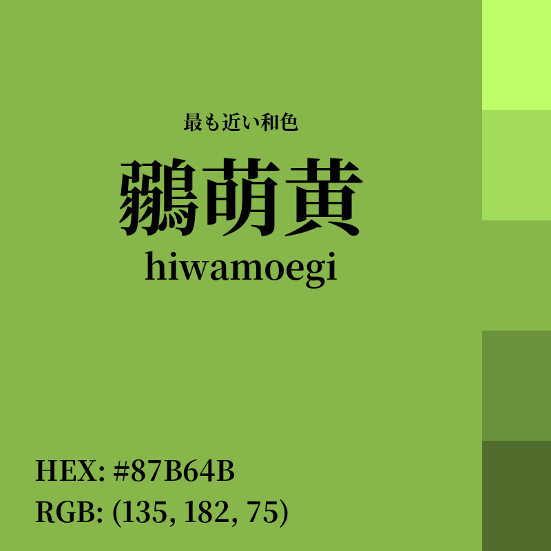 | 類似和色 | 鶸萌黄 (hiwamoegi) – 類似率 98% |